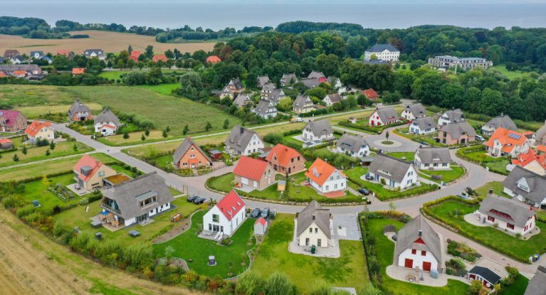 Eine harmonische, wirtschaftliche und für alle Beteiligten nachhaltige Entwicklung war uns auch für das zweite Ferienhausgebiet wichtig, mit dem wir 2013 starteten. Auf dem Areal ließen wir 79 großzügige Grundstücken erschließen, auf denen sich ein stilvolles Ensemble aus regionaltypischen Ferienhäusern entwickelt(e). Dafür sorgte ein qualitätsvolles Bebauungskonzept mit klaren baugestalterischen Festsetzungen im B-Plan, die typische Stilelemente der Ostseeregion aufgreifen. Der B-Plan fasste auch klar, welche Nutzungen im Ferienhausgebiet vorgesehen sind, was möglichen Konflikten vorbeugt.